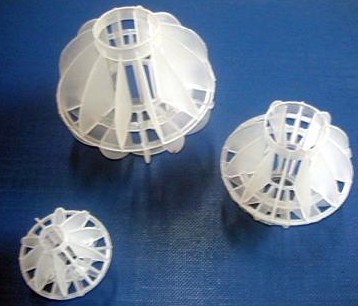 多面空心球的中部沿整個周長有一道加固環,在環的上下各有十二片球瓣。上下球瓣互相交錯沿中間軸呈放射形布置。我廠在有關生產工程塑料的單位幫助下,總結經驗,證實該產品具有如下優點:由于表面積大;傳質效率高,產品空面大,且重量輕、強度大、安裝方便、歡迎各有關部門推廣使用。特點: 氣速高,葉片多,阻力小;比表面積大,可充分解決氣液交換;具有阻力小操作彈性大重量輕、強度高、自由空間、耐高溫<120度、耐腐蝕、表面親水性能好、風阻小、電耗少、比表面積大等特點。