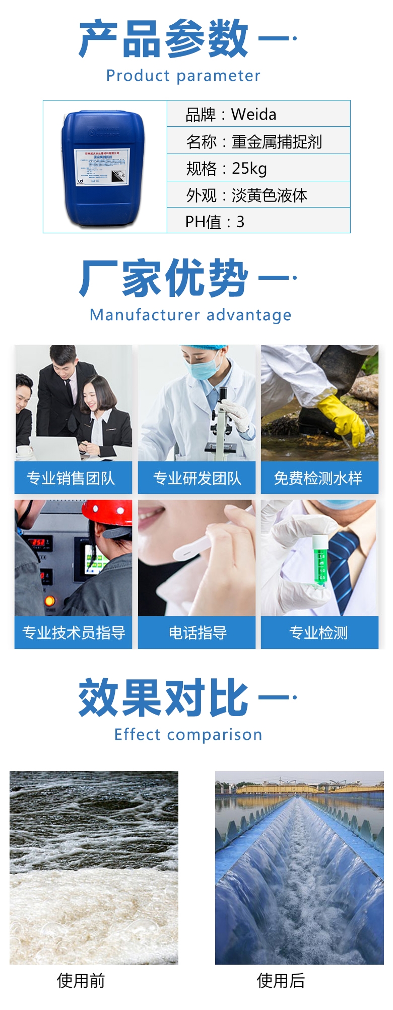 踏踏實實,弘揚匠人精神!兢兢業(yè)業(yè),塑造民族品牌!感謝您關注威大水處理官網(wǎng)重金屬捕捉劑產(chǎn)品信息,也歡迎您提出寶貴的意見,共同推進中國制造的國際競爭力!對威大重金屬捕捉劑若有疑問的地方,請撥打威大技術工程師電話: